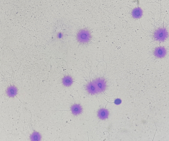 利用正常精子經(jīng)過酸處理去除核蛋白后,精子染色質(zhì)結(jié)構(gòu)松散,DNA環(huán)附于殘留的核結(jié)構(gòu),形成光暈。精子染色質(zhì)損傷處產(chǎn)生單鏈DNA片段,從而抑制了DNA光暈的擴散,根據(jù)光暈的大小可區(qū)分精子DNA的損傷程度。