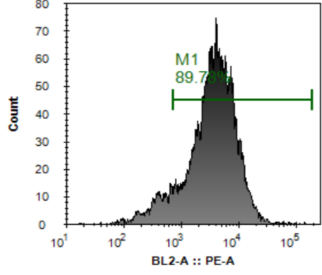 以紅色熒光為橫坐標(biāo),數(shù)量為縱坐標(biāo)。